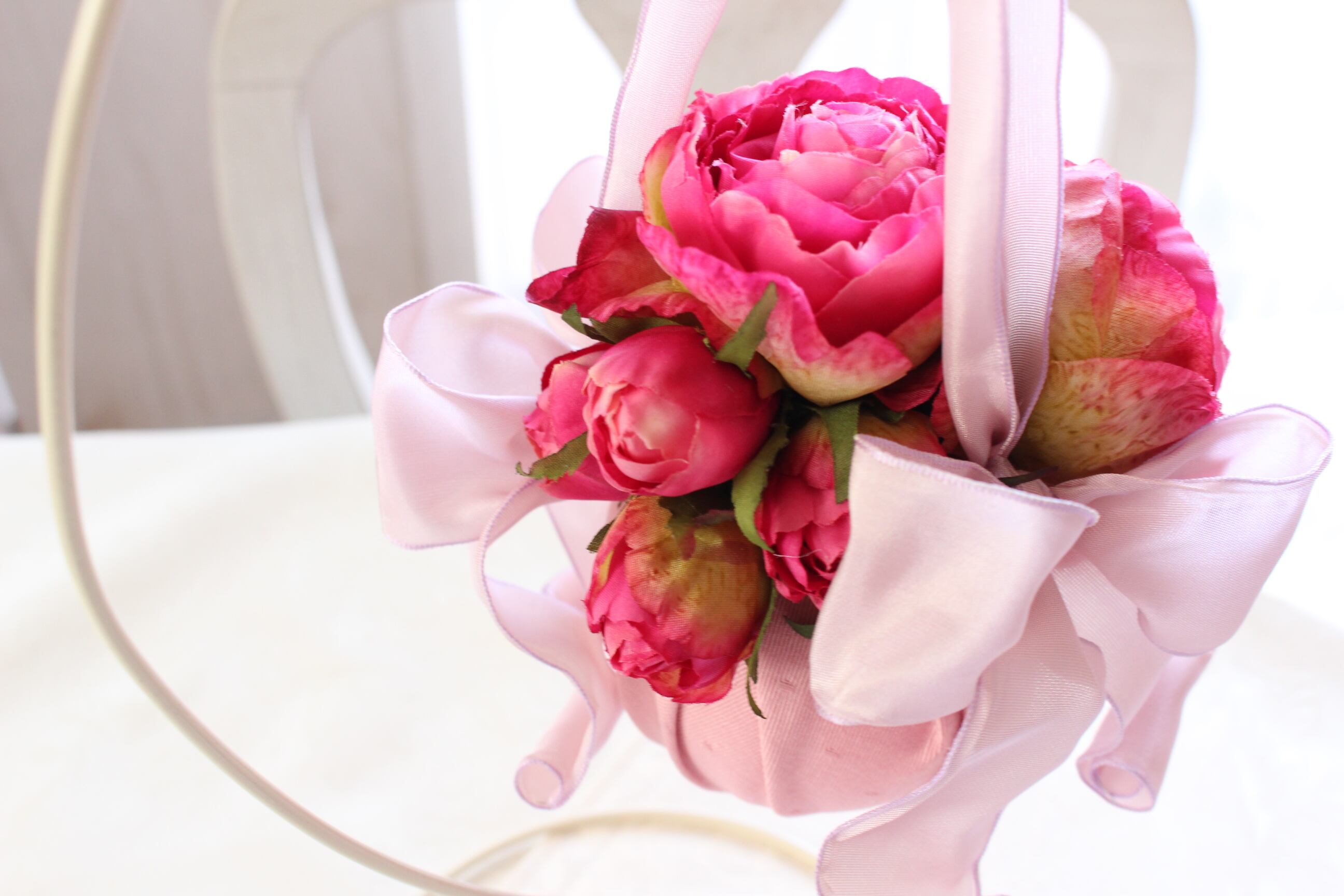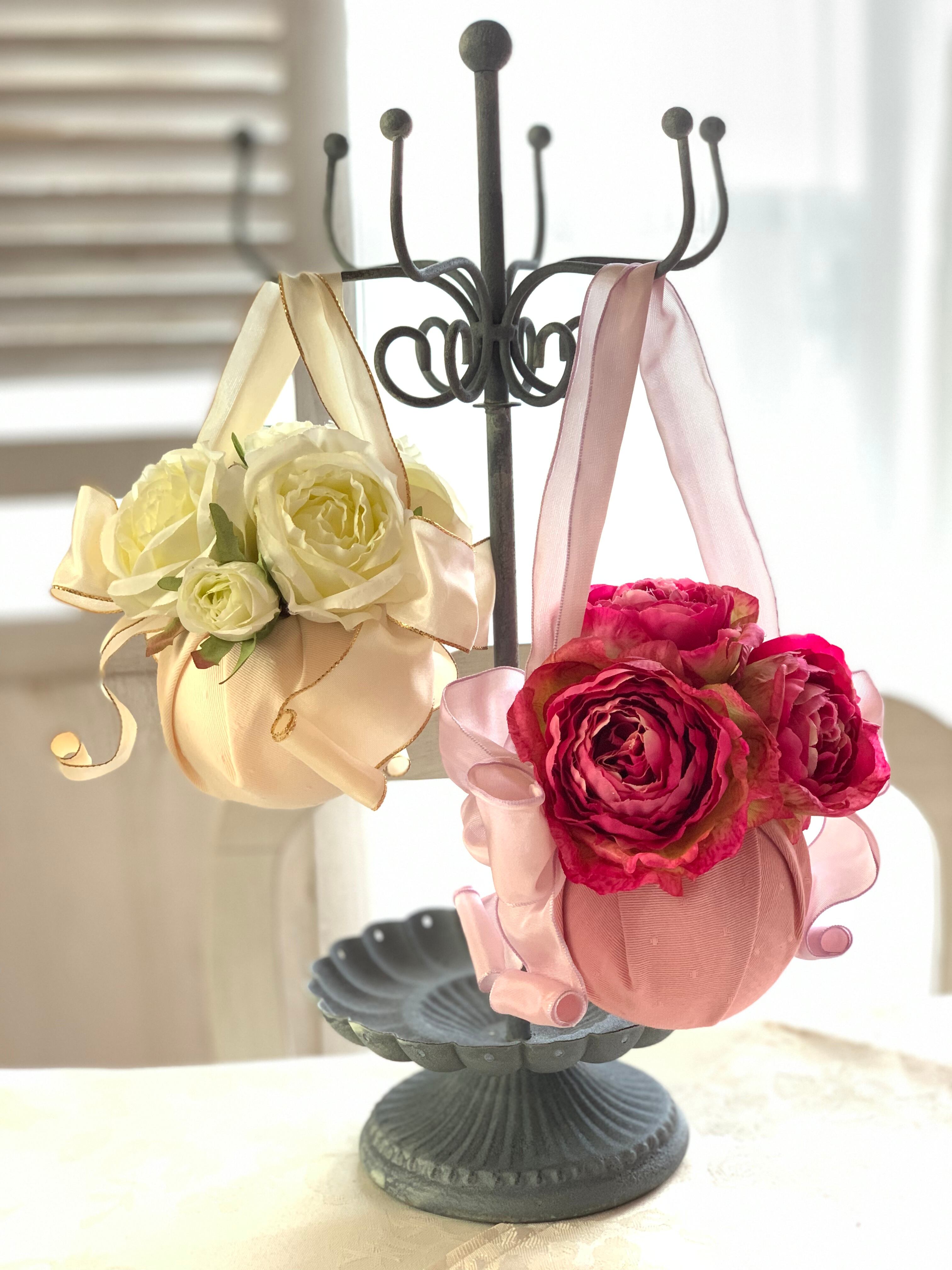 質の良いアーティフィシャルフラワーのローズを使っての可愛いドアボールです